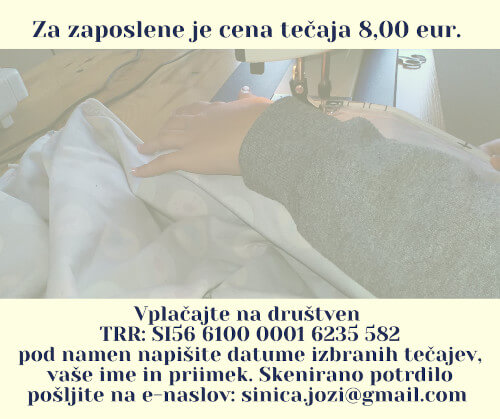 - v šivalni stroj nastavite strojno iglo – za tanko blago debelino 70, za debelejše blago 80,